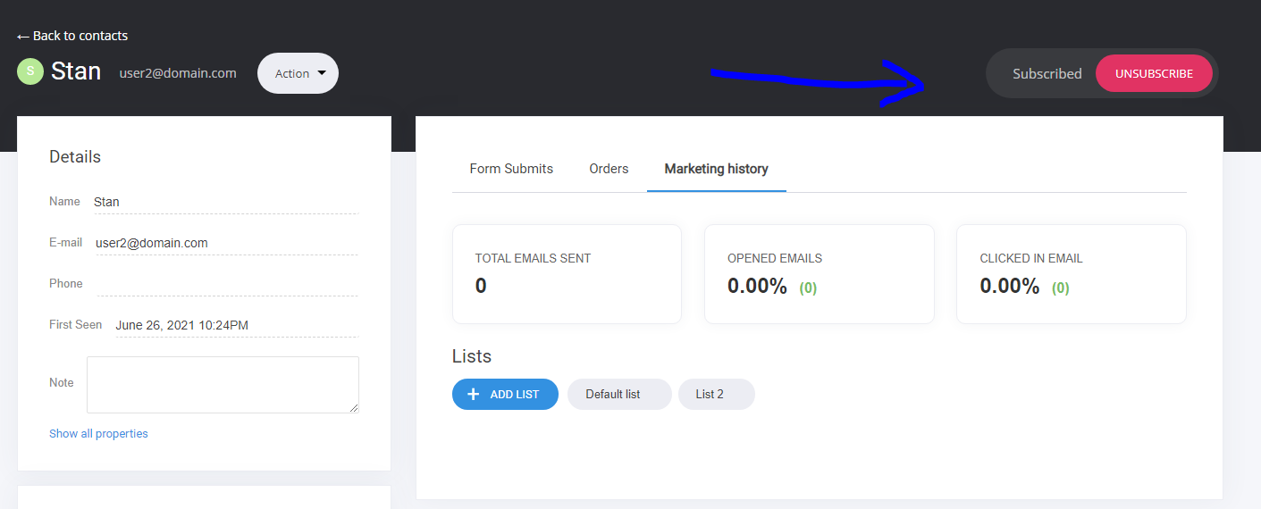 You can do that from the user's profile and on the right hand side you can find the button for Unsubscribe/Subscribe to toggle between.