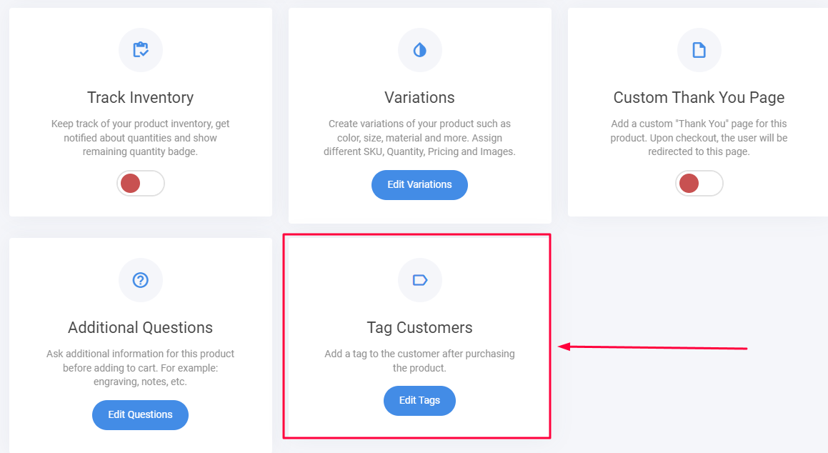 2. Having a product give the User a specific tag (not the checkout form). In this example, the automation operator has decided to only start the automation if a specific product is purchased, not just any to complete the checkout. By adding a tag to the product directly, the operator is making sure the Client only enters the automation if they purchase said product by receiving the specific tag to trigger the automation.